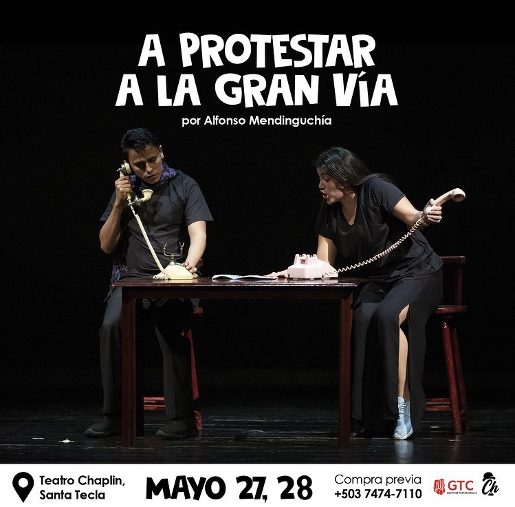 En San Salvador podrán disfrutar de dos nuevas funciones de A protestar a la Gran Vía, escrita por Alfonso Mendiguchía. Las funciones tendrán lugar los días 27 y 28 de mayo en el Teatro Chaplin de la capital salvadoreña.