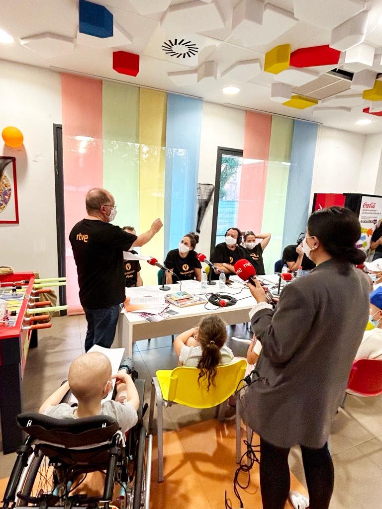 Niños y niñas enfermos se convierte en narradores de cuentos en La sala de RNE junto con voluntarios de RTVE en la Casa Ronald McDonald, dentro del recinto del Hospital Universitario Niño Jesús de Madrid, donde viven las familias y sus hijos en tratamiento. Con la participación de Benigno Moreno (Ficción sonora RNE), Leticia Audibert (La pequeteca) y los actores Alfonso Mendiguchía y Patricia Estremera (Los Absurdos Teatro), junto con los niños Mario, Valeria, Malak, Eneko, Miral, Caro, Fran, Alejandro, Patricia y Ana Paula.